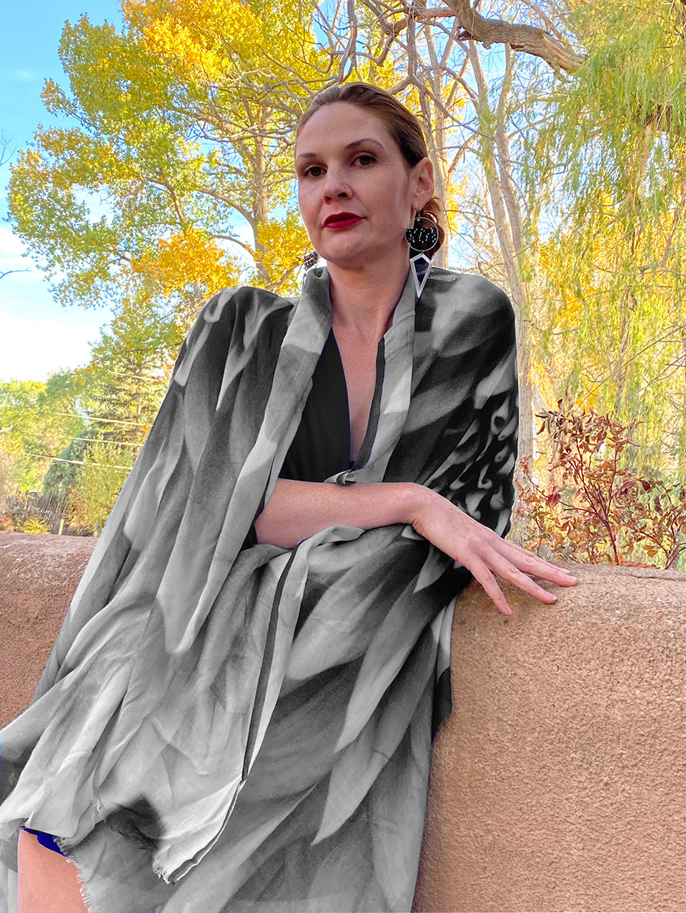 “Ive always wanted to wear the beauty of a photograph. But, how exactly, does one wear a picture? I didn’t want to place my images on a garment that was too small, like a hat, or irregular in shape, like a shirt or pants. Shawls on the other hand? They are like a large flowing canvas, perfect!”